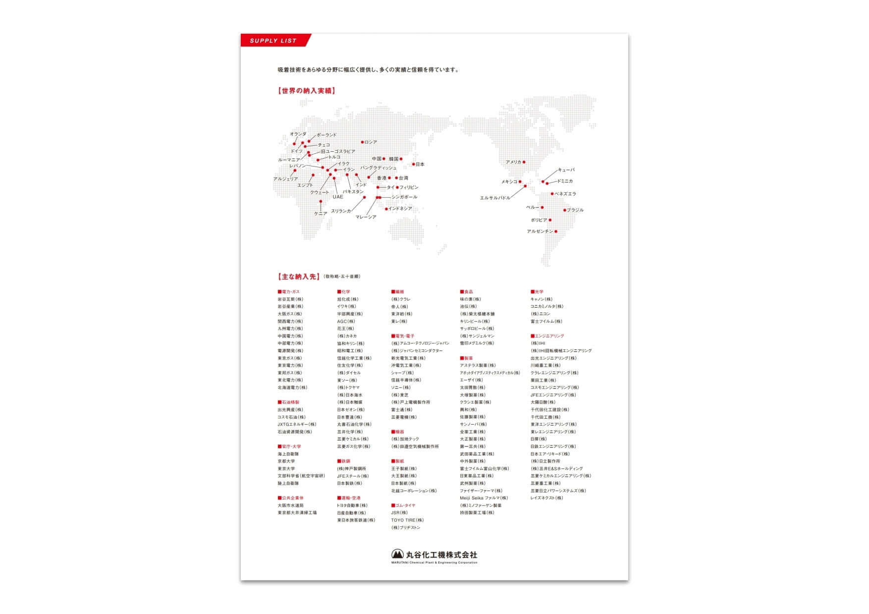 ■名称/丸谷化工機株式会社■代表者/代表取締役社長 井口 大成■設立/1948年5月10日■資本金/4,000万円■所在地/本社:東京都千代田区丸の内、工場:茨城県ひたちなか市■主事業/吸着技術を基礎とした大型精製プラントから包装用乾燥剤など各種製品のエンジニアリング・製造・販売 ※2020年4月現在