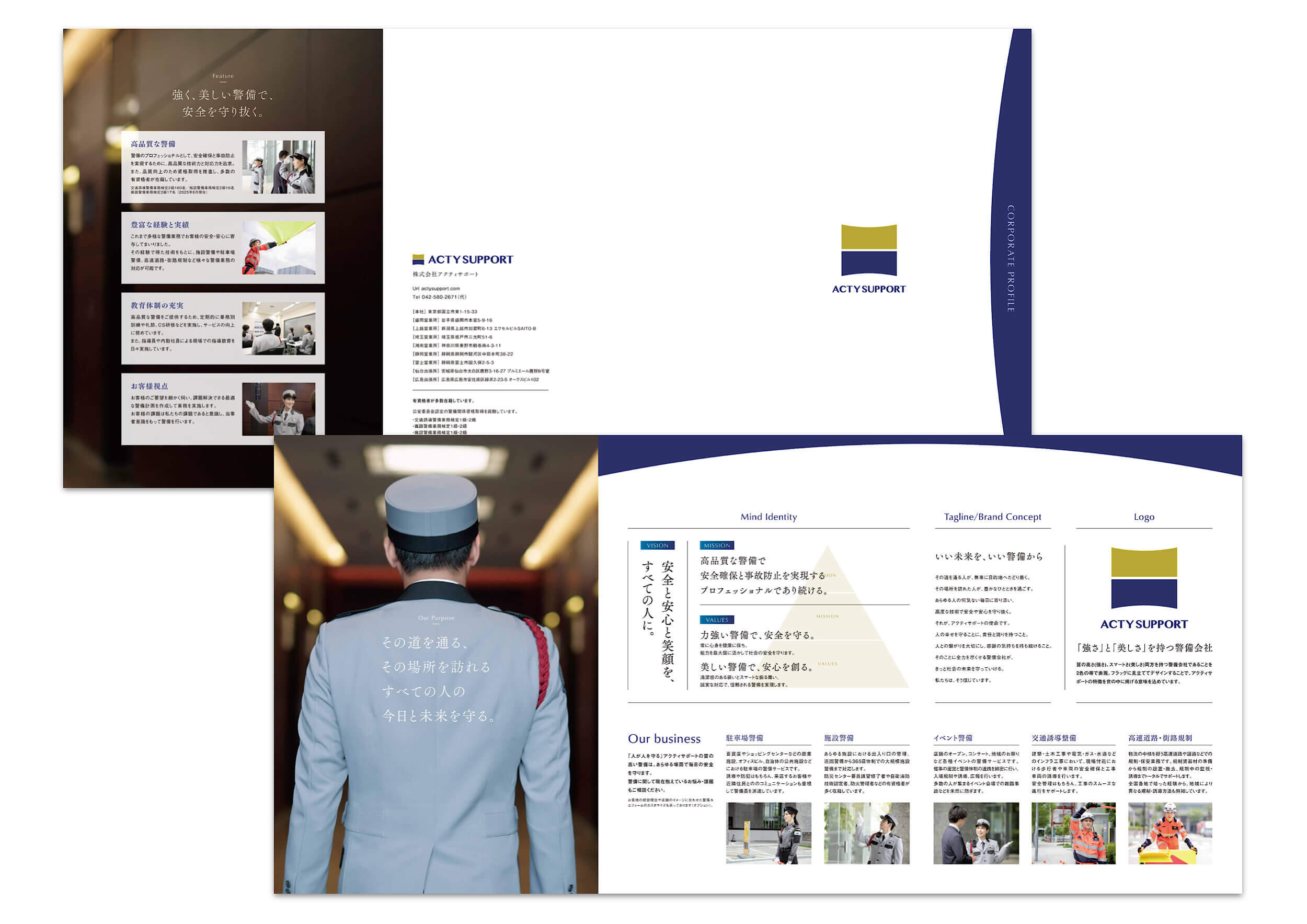 株式会社アクティサポートは、社会の安全を守る警備会社。1号警備にあたる施設・保安警備や、2号警備にあたる高速道路警備・規制を中心に、駐車場警備、イベント警備、交通誘導警備、街路規制などの警備サービスを幅広く提供しています。本社は、東京都国立市。営業拠点として、盛岡、上越、埼玉、湘南、静岡、富士、広島の8拠点を構え、顧客ニーズに寄り添う“力強い警備”と“美しい警備”を提供しています。