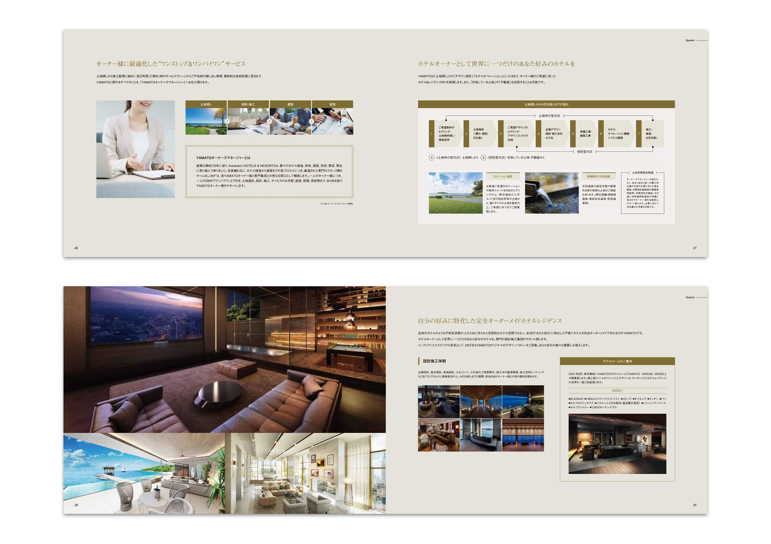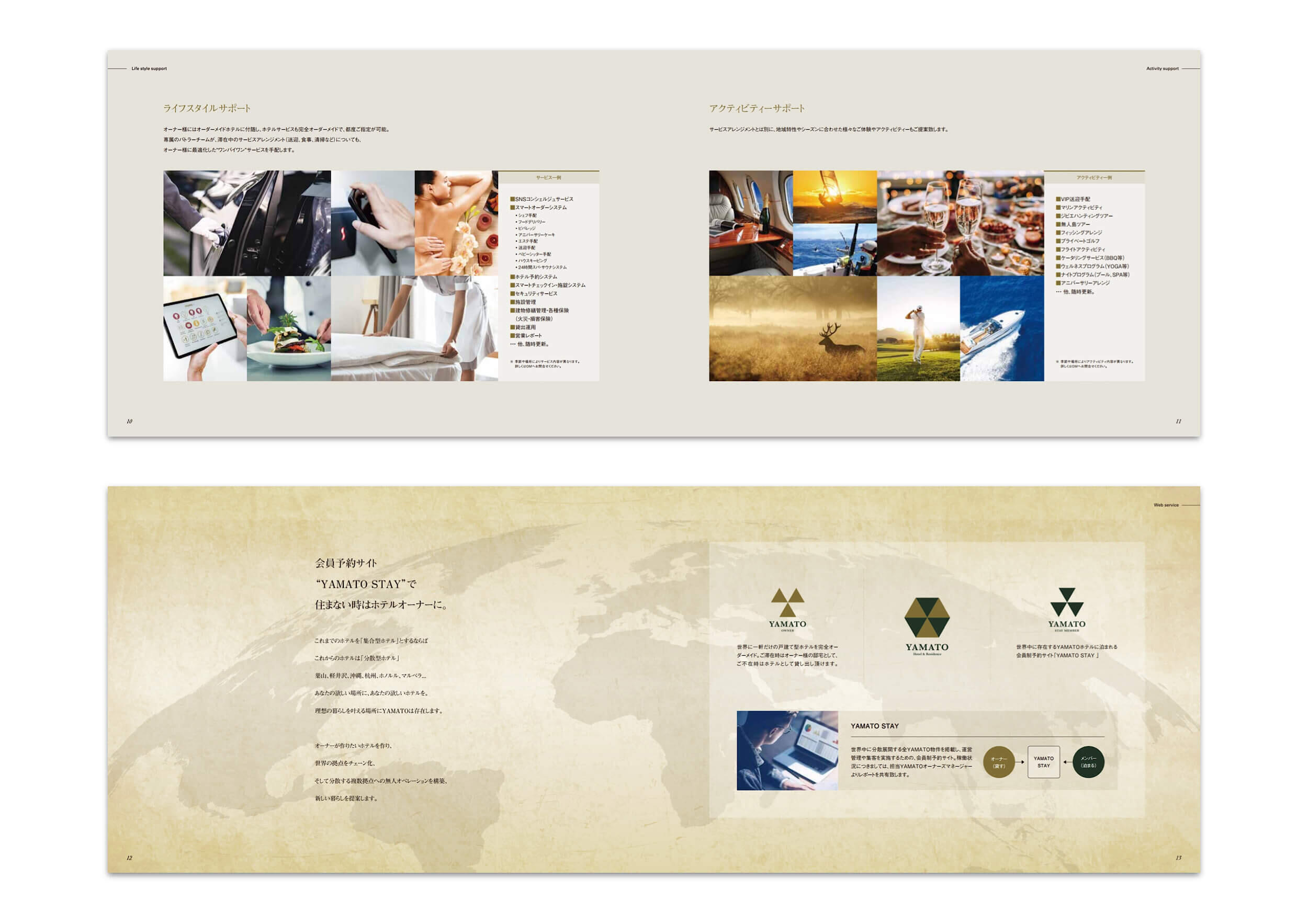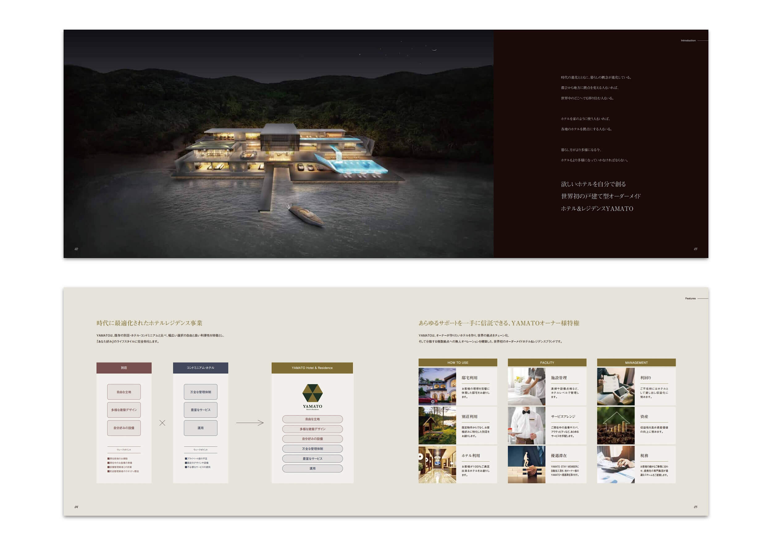 「欲しいホテルを、自分で創る」。そのコンセプトを形にするために、パンフレットの隅々までこだわり抜き、YAMATOの思想と世界観を余すところなく伝える一冊に仕上げました。