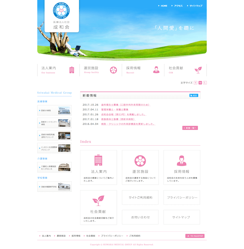 同法人が運営する病院サイトはあるものの、それを統括する法人サイトがなく、採用活動にも影響があることからサイト制作に着手。清潔感のあるシンプルなデザインに仕上げています。