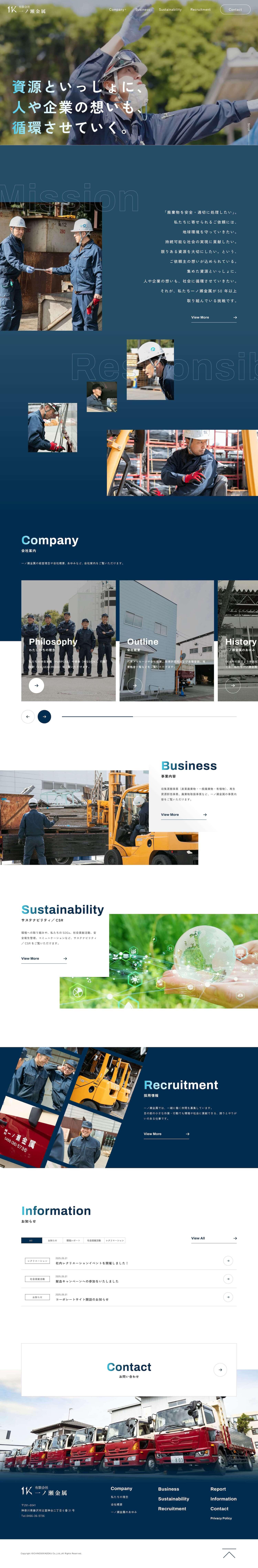顧客の事業所から排出される産業廃棄物・一般廃棄物・有価物の収集運搬、再生資源の卸売事業などを展開する一ノ瀬金属。創業以来大切にしている言葉として伺ったのは「好循環」でした。モノ(資源)・ヒト(思いやり)・サービス(事業)をはじめ、世の中のさまざまな要素が良い関係を築き、社会に循環すること。そこに付加価値を与えながら関わっていく同社の理念を体現するコーポレートサイトデザインの制作をめざしました。