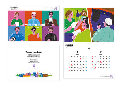 2026年版カレンダーは、「音づくりを支える人々」に焦点を当てたアートワークとして制作しました。ステージの感動を陰で支えるスタッフの姿を、温かく力強いタッチで描写。舞台やイベント、スポーツの熱狂の裏にある努力や情熱を通して、同社が掲げる「感動を・ともに・創る」という理念をビジュアルで表現しました。技術力だけでなく“人”を中心にした企業姿勢を印象づける作品です。